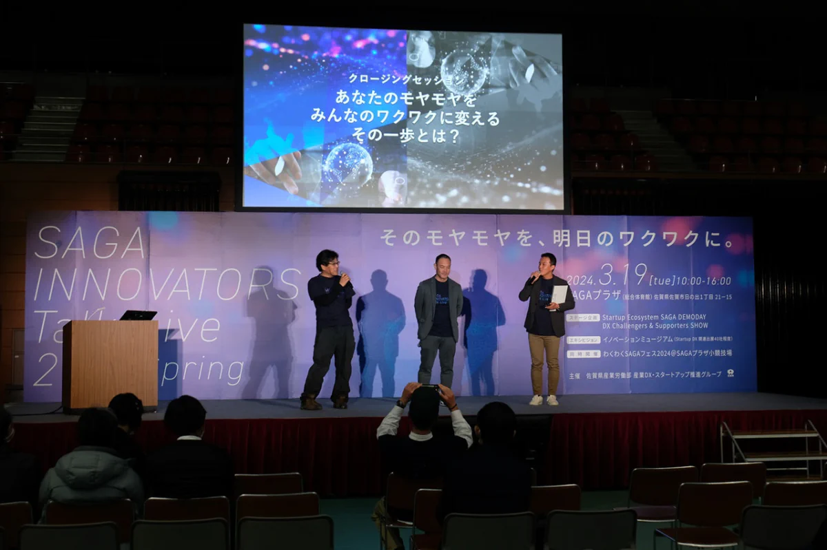 3月19日に開催された「SAGA INNOVATORS TALK LIVE 2024 Spring」は、その名前の通り、佐賀の革新的なイノベーターたちがトークを繰り広げる正味6時間の超ロングでビッグなイベントとなりました!390名の方にご参加いただき、盛況のうちに幕を閉じることができました。一部、ステージイベントのアーカイブ動画を公開しておりますので、当日都合が悪かった方や見逃した方、もう一度見たいという方もぜひご覧ください。ご来場、オンライン参加いただいたみなさま、ありがとうございました!