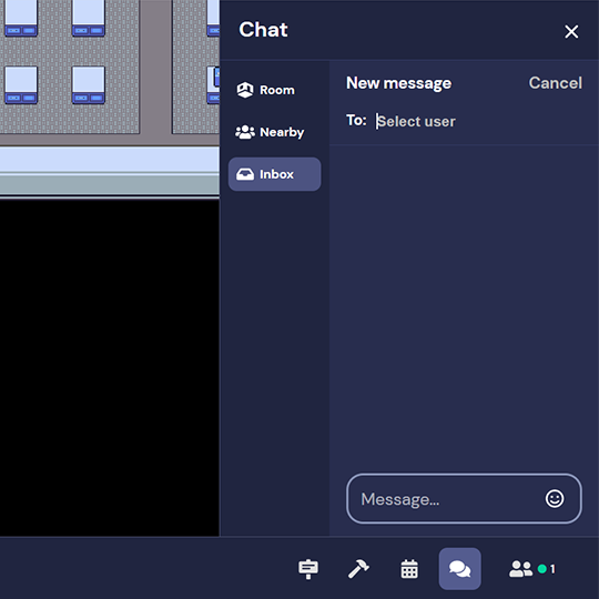 - 画面右下のふきだしアイコンから、「Inbox」→「New message」を選択