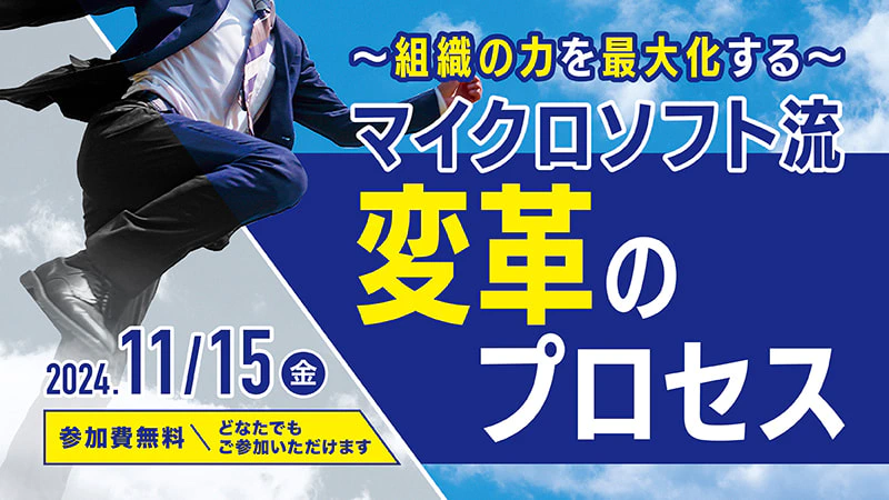 本セミナーでは、マイクロソフトの畠山氏(SAGA Smart Tec Adviser)を講師に迎え、ビジネスと技術の革新のより「変革」を求められたマイクロソフトが実際に行った変革プロジェクトの成功・失敗事例を基に、組織の力をどのように最大化し、変革を実現しているのかを具体的にお話いただきます。