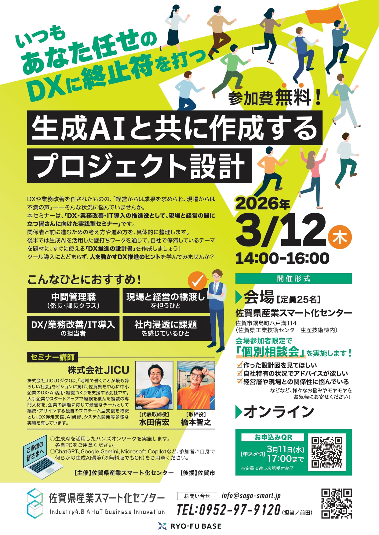 本セミナーは、「DX・業務改善・IT導入の推進役として、現場と経営の間に立つ皆さんに向けた実践型セミナー」です。