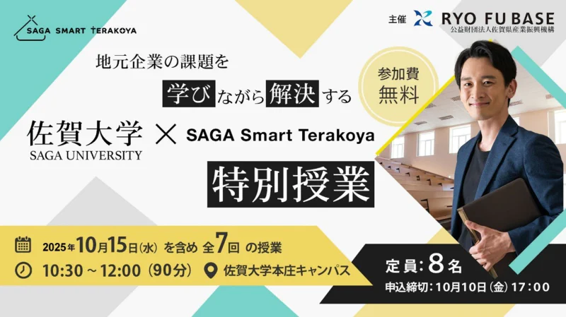 SAGA Smart Terakoyaでは、起業・複業のための学びと実践の場を提供しています。この度、佐賀大学生と一緒に地域企業の課題解決に挑戦する特別講義を実施いたします。講義では、株式会社ミズが展開する「健康長寿実践塾 鎌田塾」(健康法を学び、実践する塾)のマーケティング課題に、現役大学生とチー...